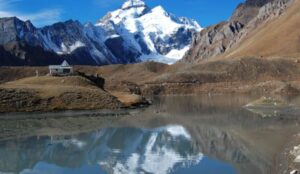 From here, travelers walk a short distance to reach Parvati Sarovar, a beautiful high-altitude lake located at the foot of the Adi Kailash mountain.
